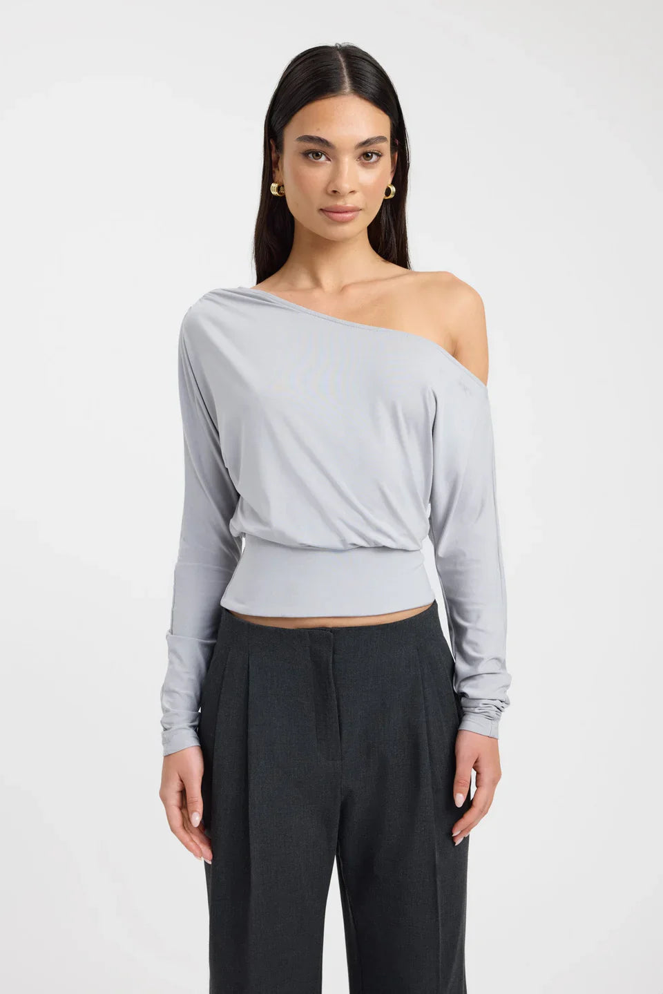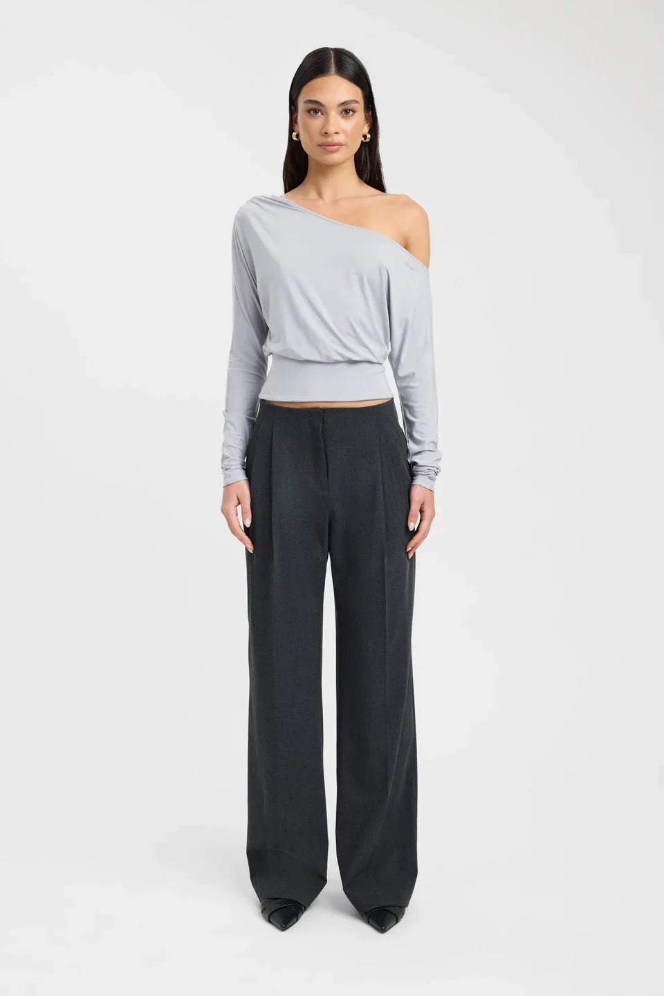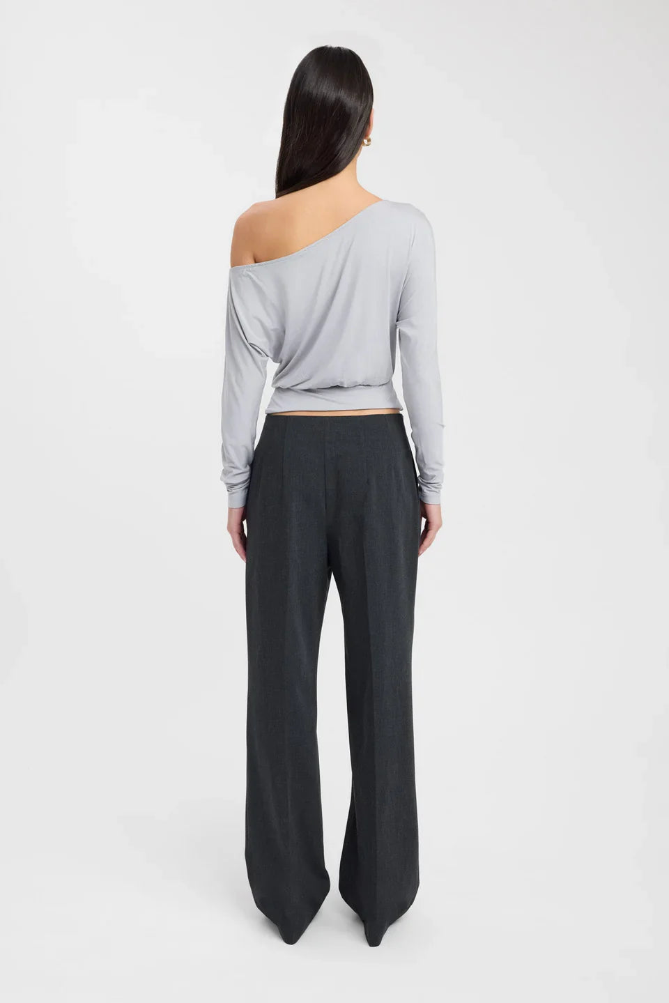 Cut in a soft, stretchy jersey with a relaxed, draped body that tapers into a wide waist band for a clean, sculpted finish. Pull-on; no zips.