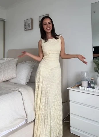 Cream Textured Sleeveless Maxi Dress | Gentle High Waist Slip Dress