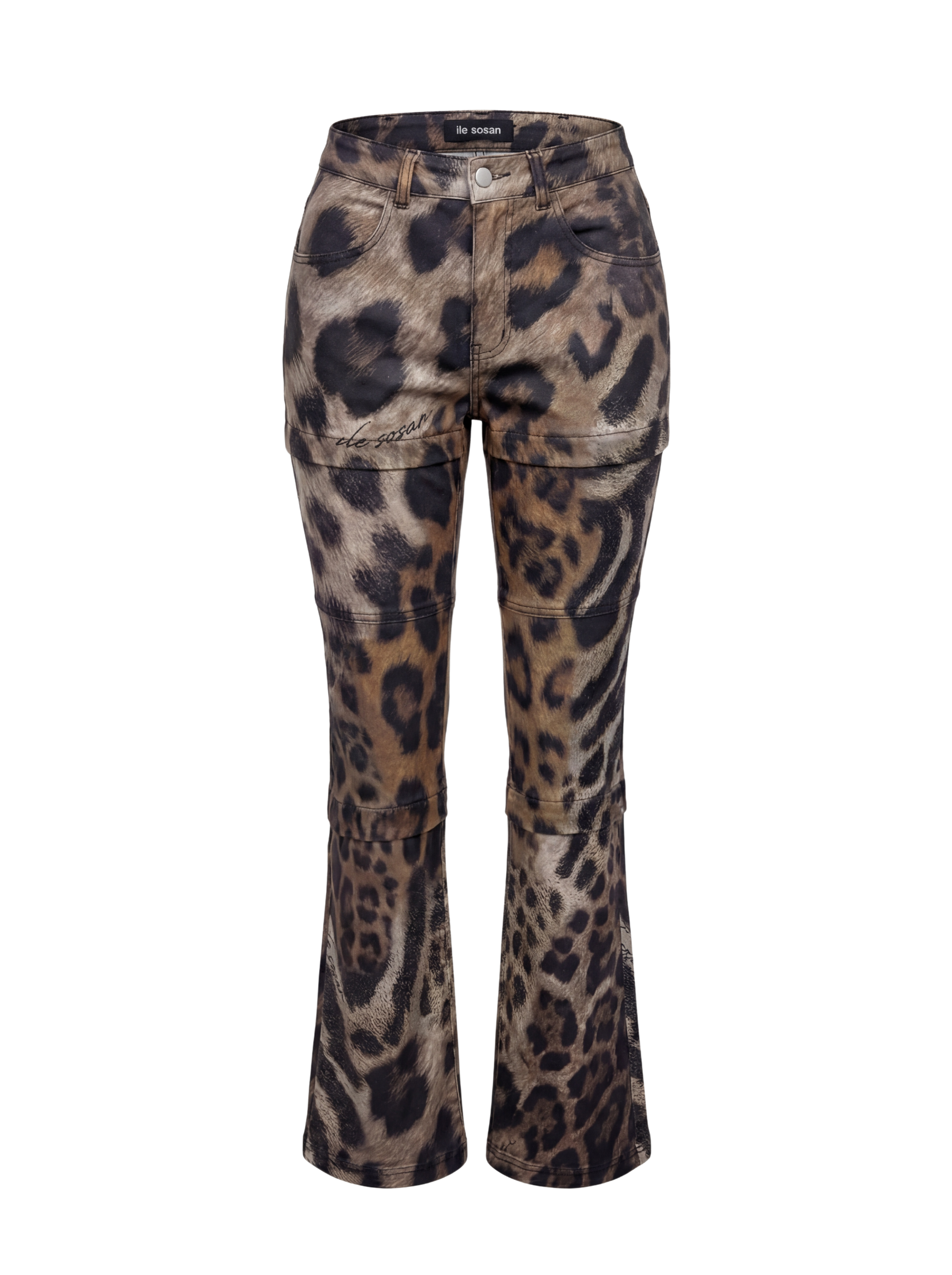 Make a fierce statement with our 3-in-1 Leopard Denim Pants. Designed with hidden, streamlined transitions, this innovative piece effortlessly converts from a full-length flare to a tailored capri to a classic short. One garment, three silhouettes—ready to match your environment, the weather, or your mood.
