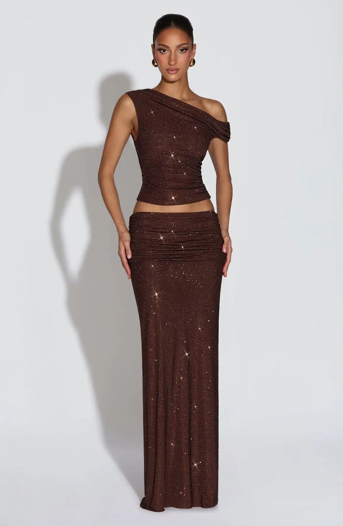 Sexy Beveled Rhinestone Solid Color Suit Skirt