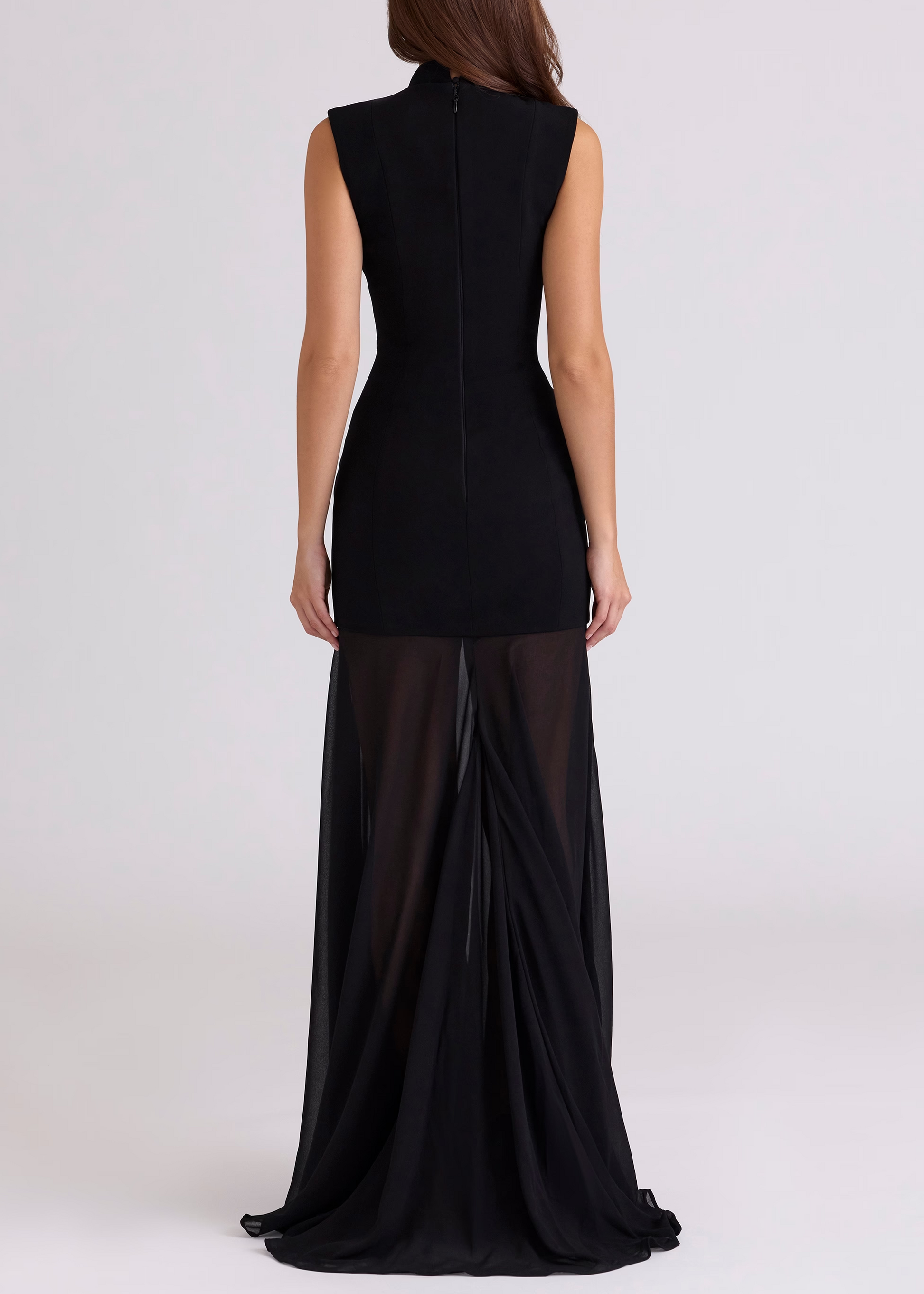 Sexy Sleeveless Hollow Slim-Fitting Patchwork Voile Maxi Dress