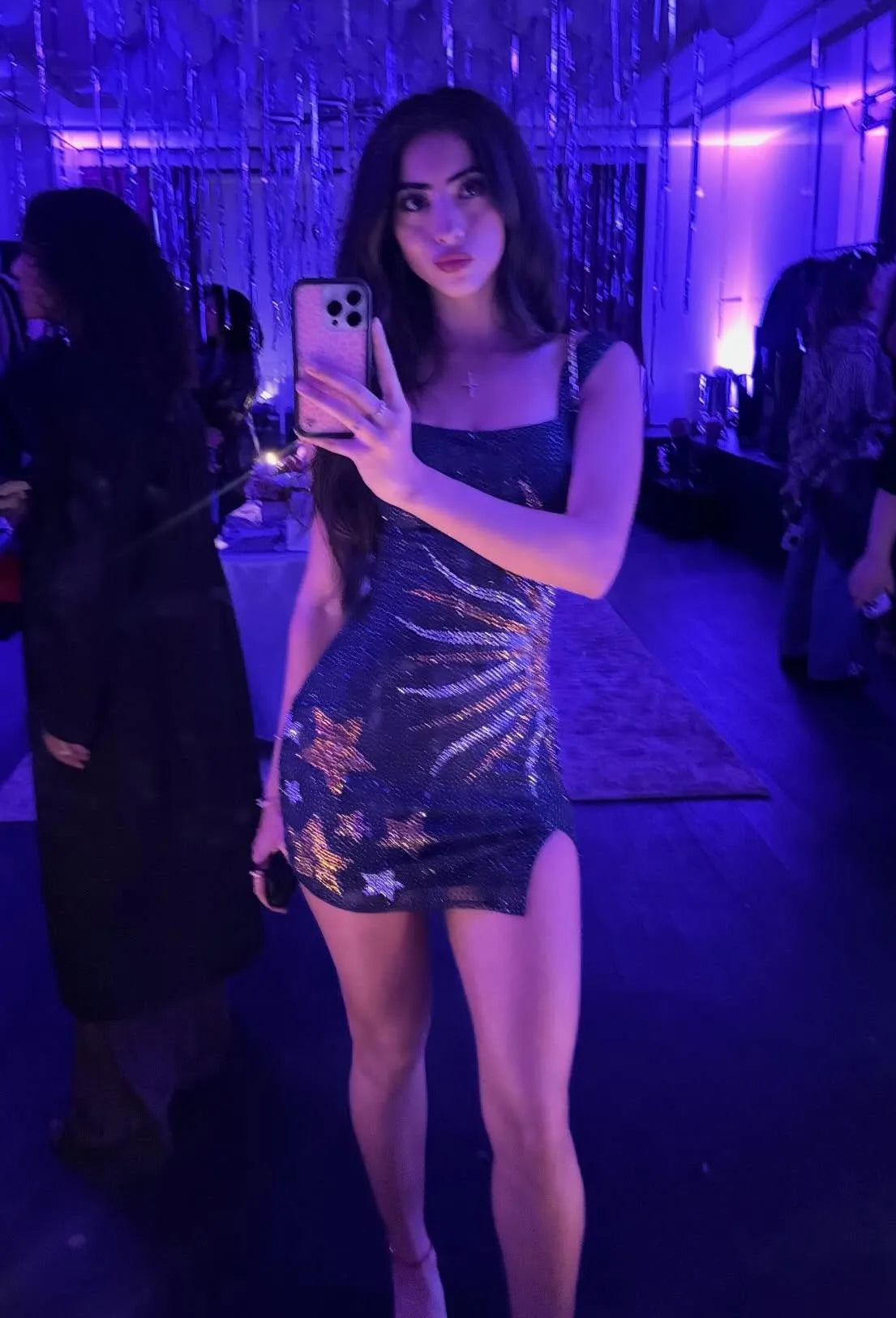 Sexy U Collar Hot Drilling Sun-star Mini Skirt