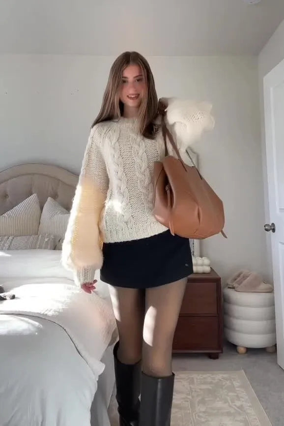 Temperament Pure Color Wide Sleeve Pullover Sweater