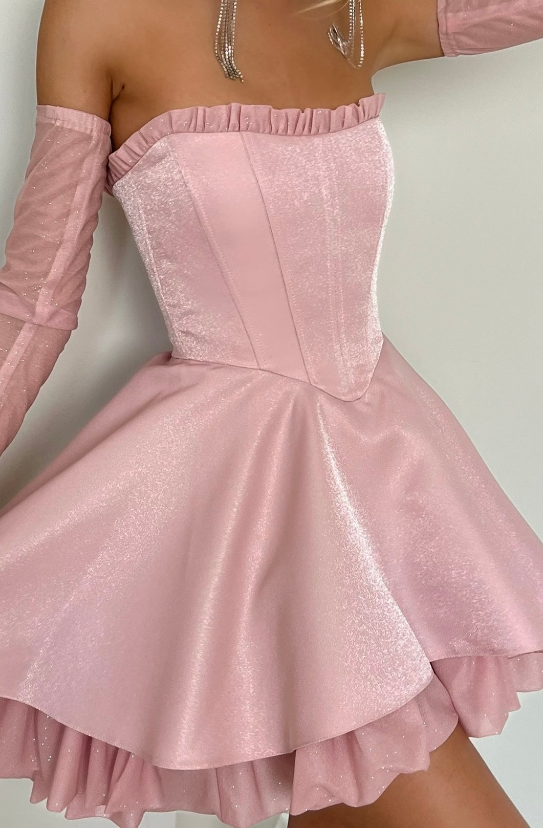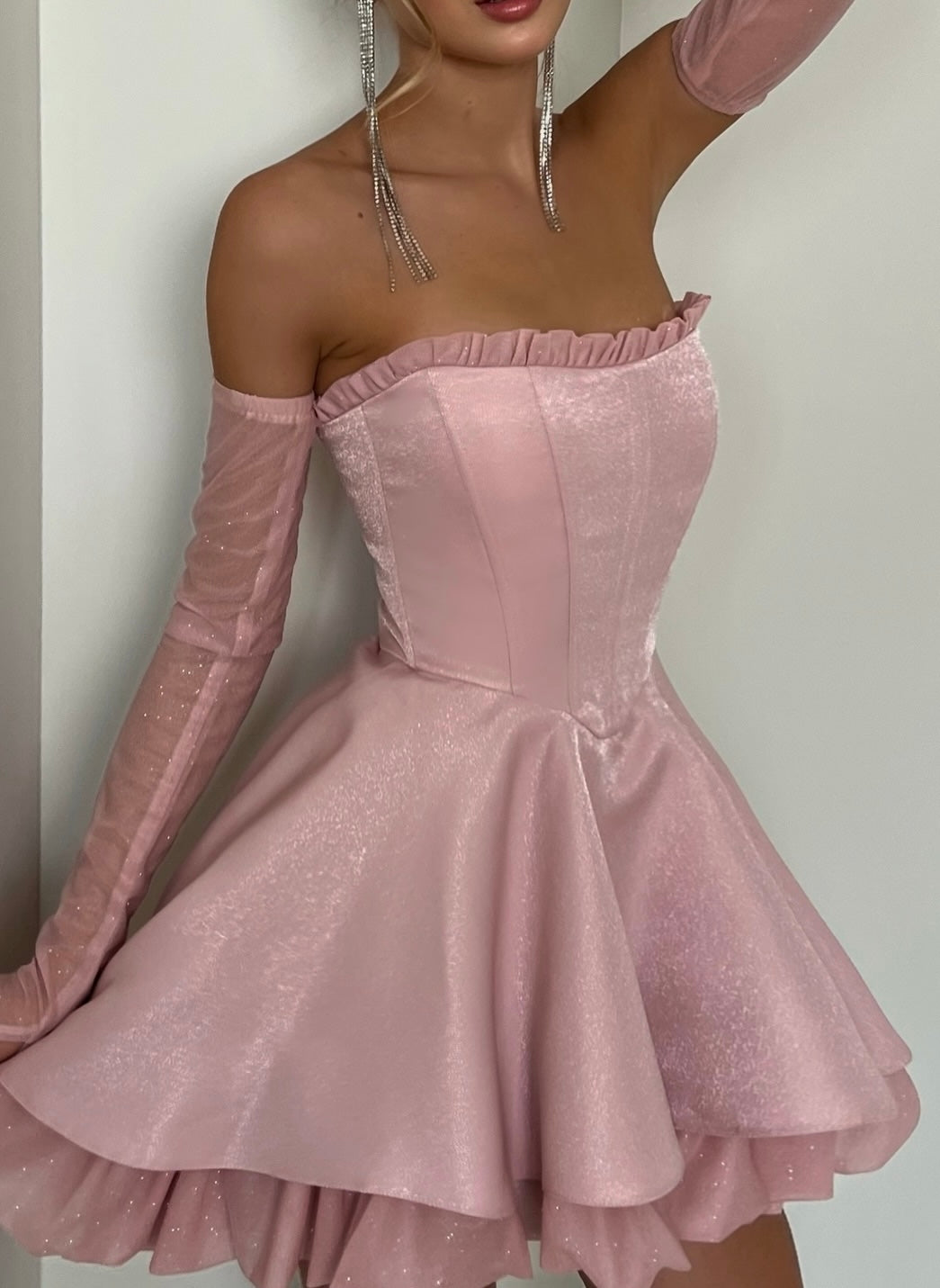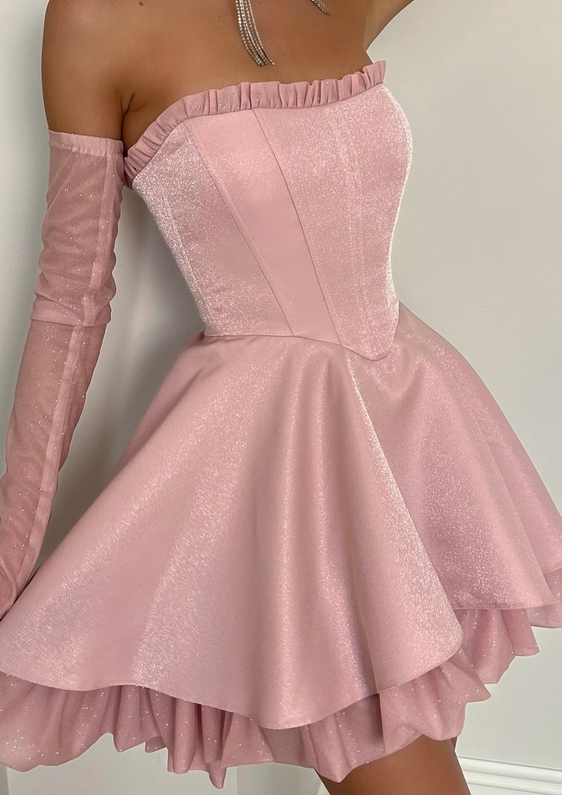 Tube Top Wooden Ear Multi-Layer Lotus Leaf Mini Dress